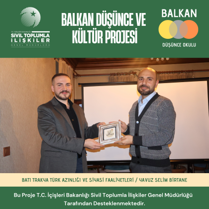 T.C. İçişleri Bakanlığı Sivil Toplumla İlişkiler Genel Müdürlüğü tarafından desteklenen ve Balkan Düşünce Okulu tarafından yürütülen Balkan Düşünce ve Kültür Projesi kapsamında düzenlenen “Batı Trakya Türk Azınlığı ve Siyasi Faaliyetleri” başlıklı seminer, Batı Trakya Türklerinin tarihsel, siyasal ve kurumsal mücadelesini kapsamlı biçimde ele aldı.
